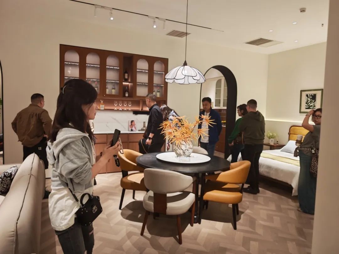 新品发布品鉴会现场,必威bw中古全案凭借独特的空间布局,创新的时尚设计,优质的材料细节以及精心的场景营造,吸引了全国优秀经销商及业界嘉宾们的目光,他们沉浸在高级的美学世界里,感受创新与品质交织的魅力。必威bw中古展厅里人潮涌动,众多经销商都对中古全案新品的创新设计称赞有加,现场签约不断,气氛热烈。